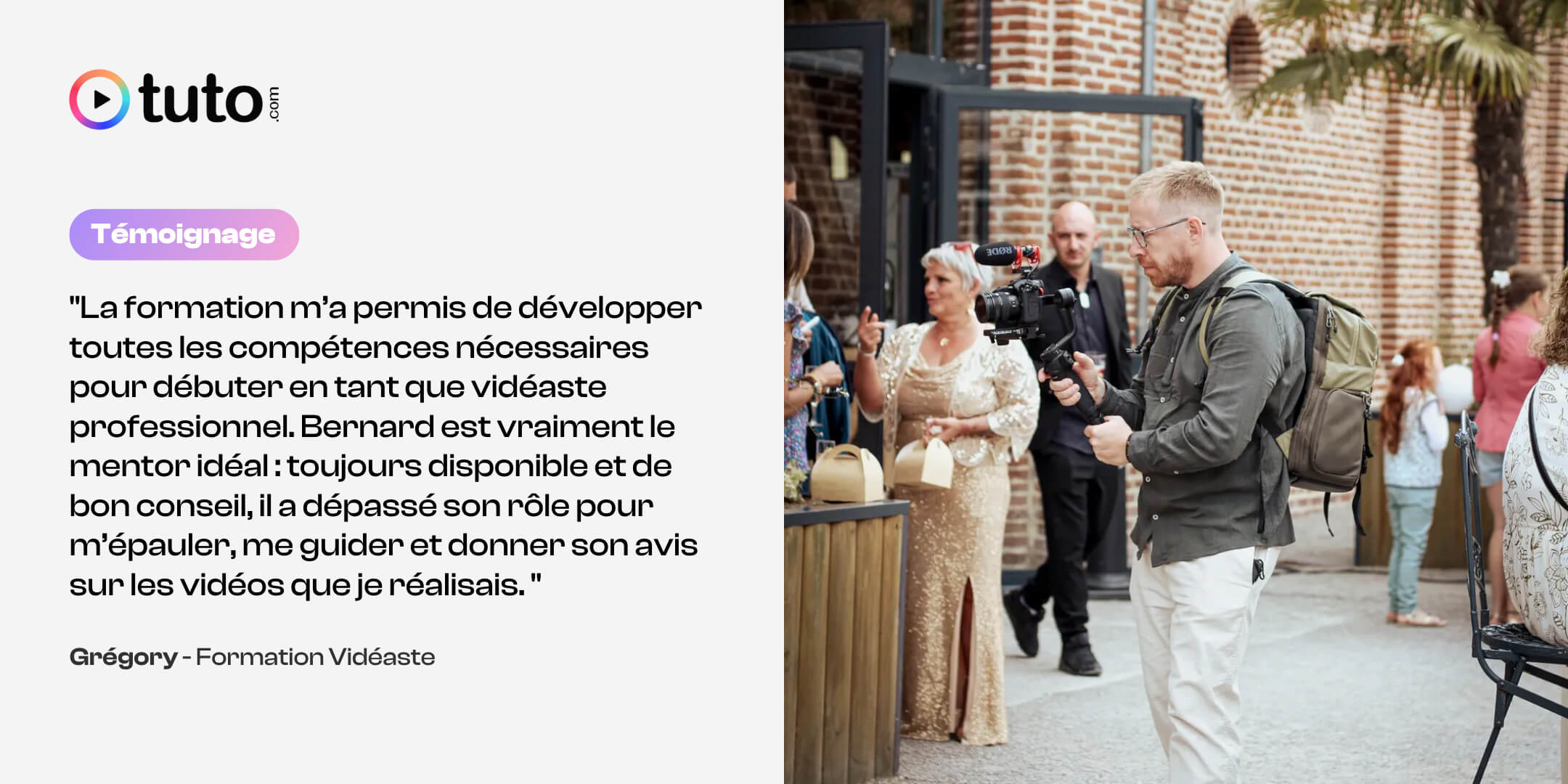 - Le parcours Vidéaste de Tuto.com a été le tremplin qui lui a permis de développer ses compétences et de se lancer en freelance.
