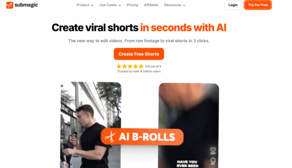 Submagic propose un plan gratuit de 3 vidéos courtes. Si nous vous le présentons dans cette liste de solutions pour convertir des vidéos longues en courtes, c’est pour son IA. En effet, Submagic dispose d’une IA de sous-titrage de qualité. Laissez-vous bluffer par la lisibilité et l’animation du sous-titrage de vos shorts et Réels !
