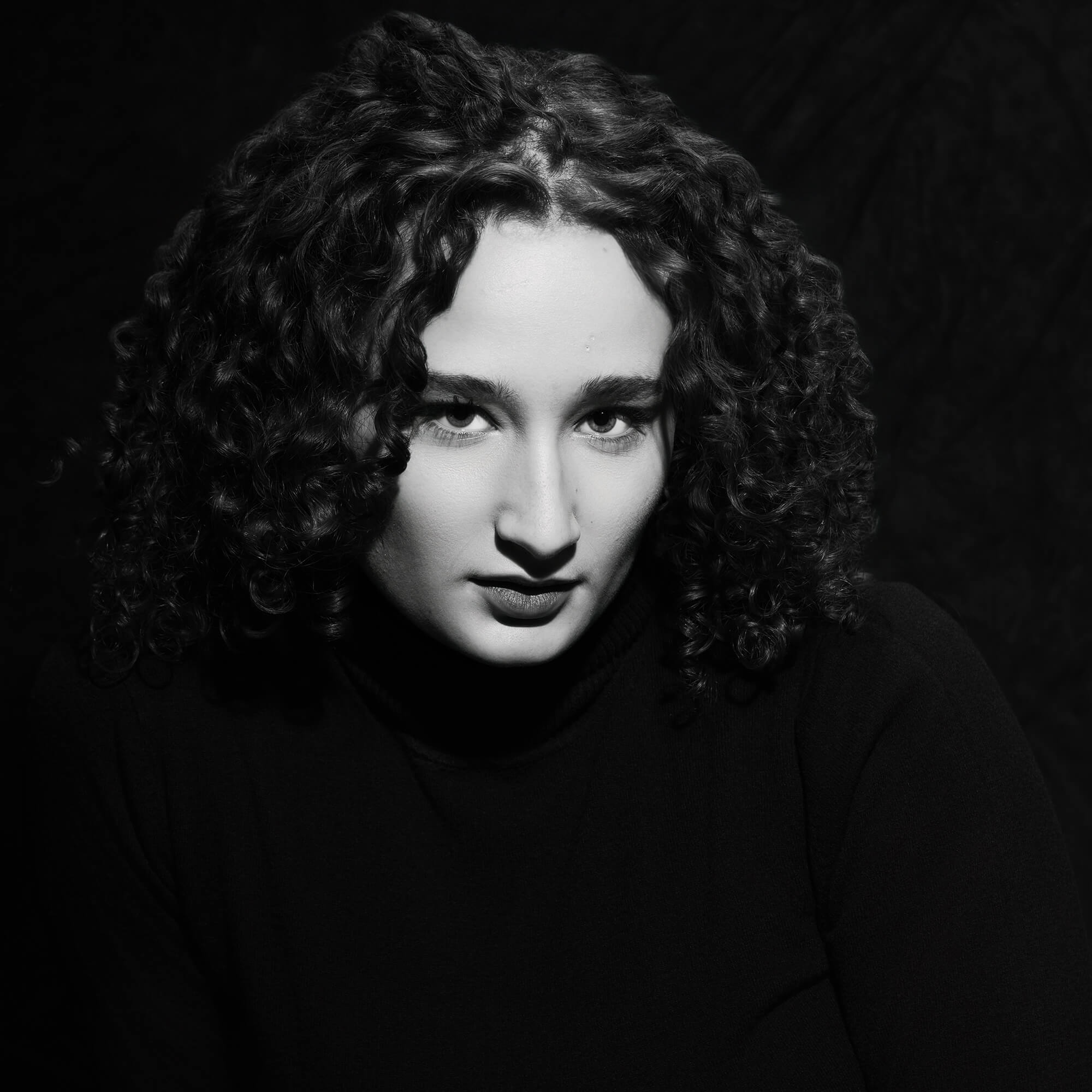 Une de mes photos préférées, reste une photo de Manon en noir et blanc lowkey, à prédominance de noir dans le style D. ROUVRE. Elle montre l’intensité du regard du modèle, noyée dans cette dominance de teinte noire.