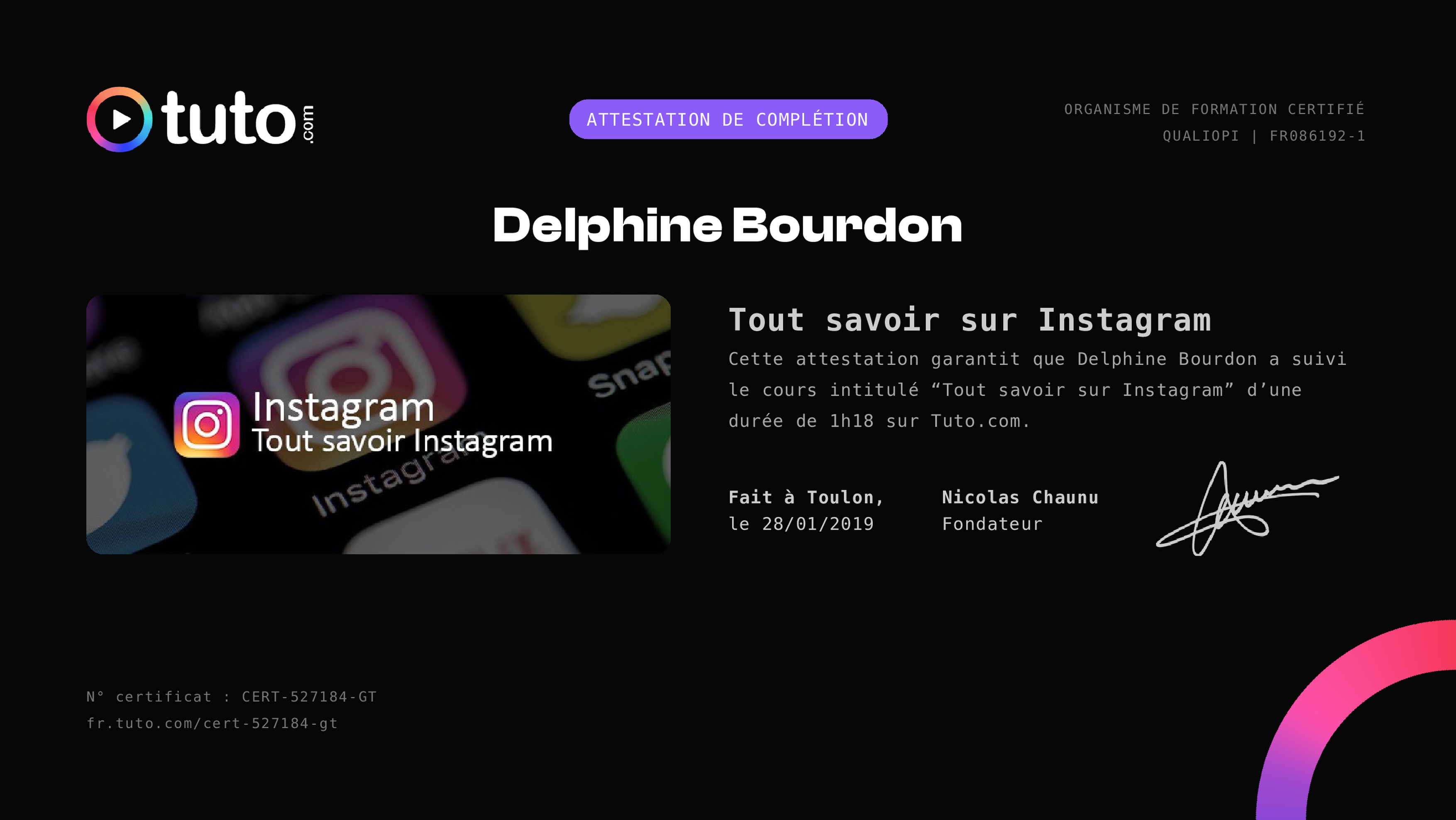 Delphine a suivi l'intégralité du cours "Gratuit : Tout savoir sur Instagram" À votre tour d'améliorer vos compétences 😊