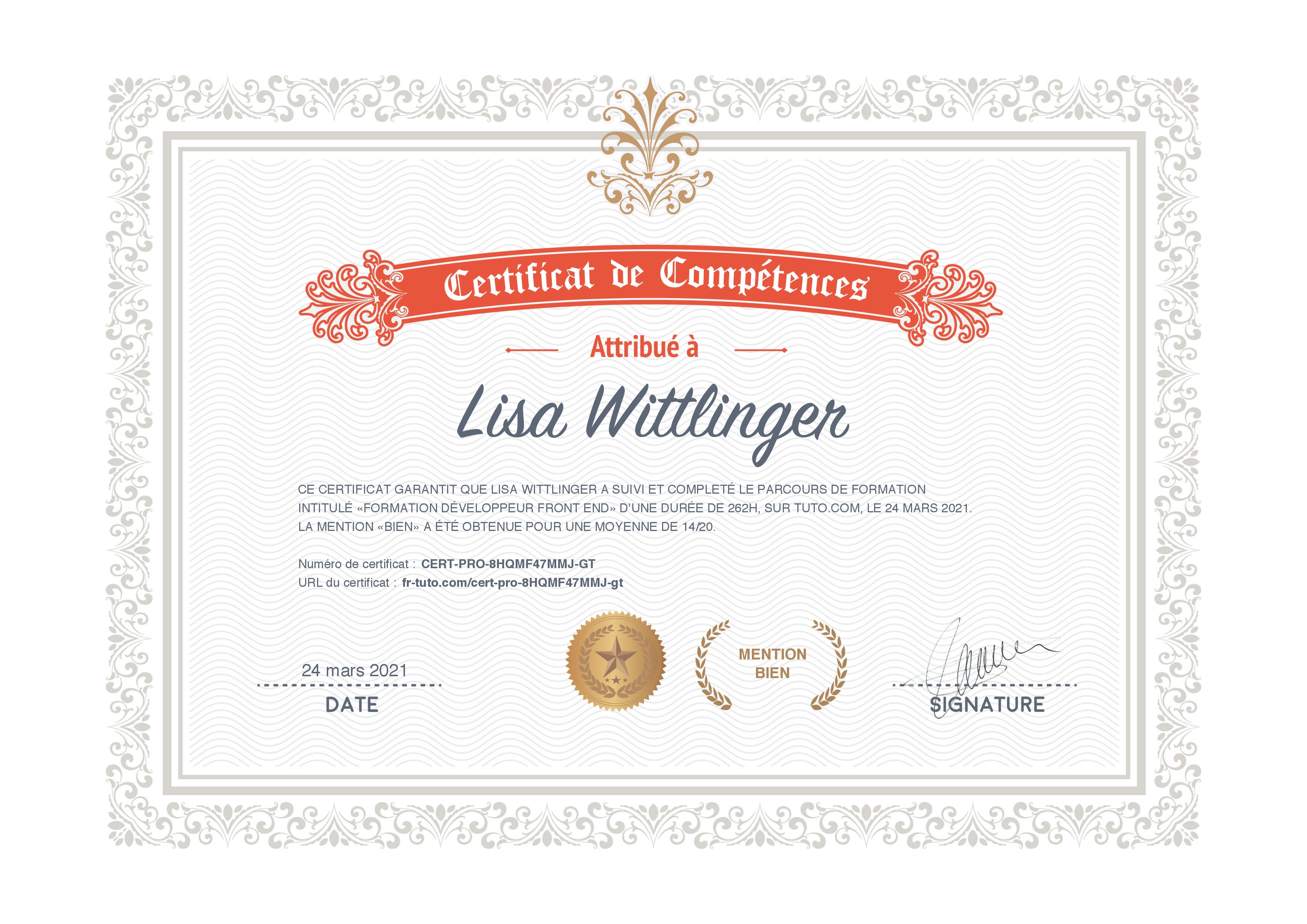 Lisa a suivi le parcours de formation mentoré "Formation Développeur Web Front End 2018" À votre tour d'améliorer vos compétences 😊