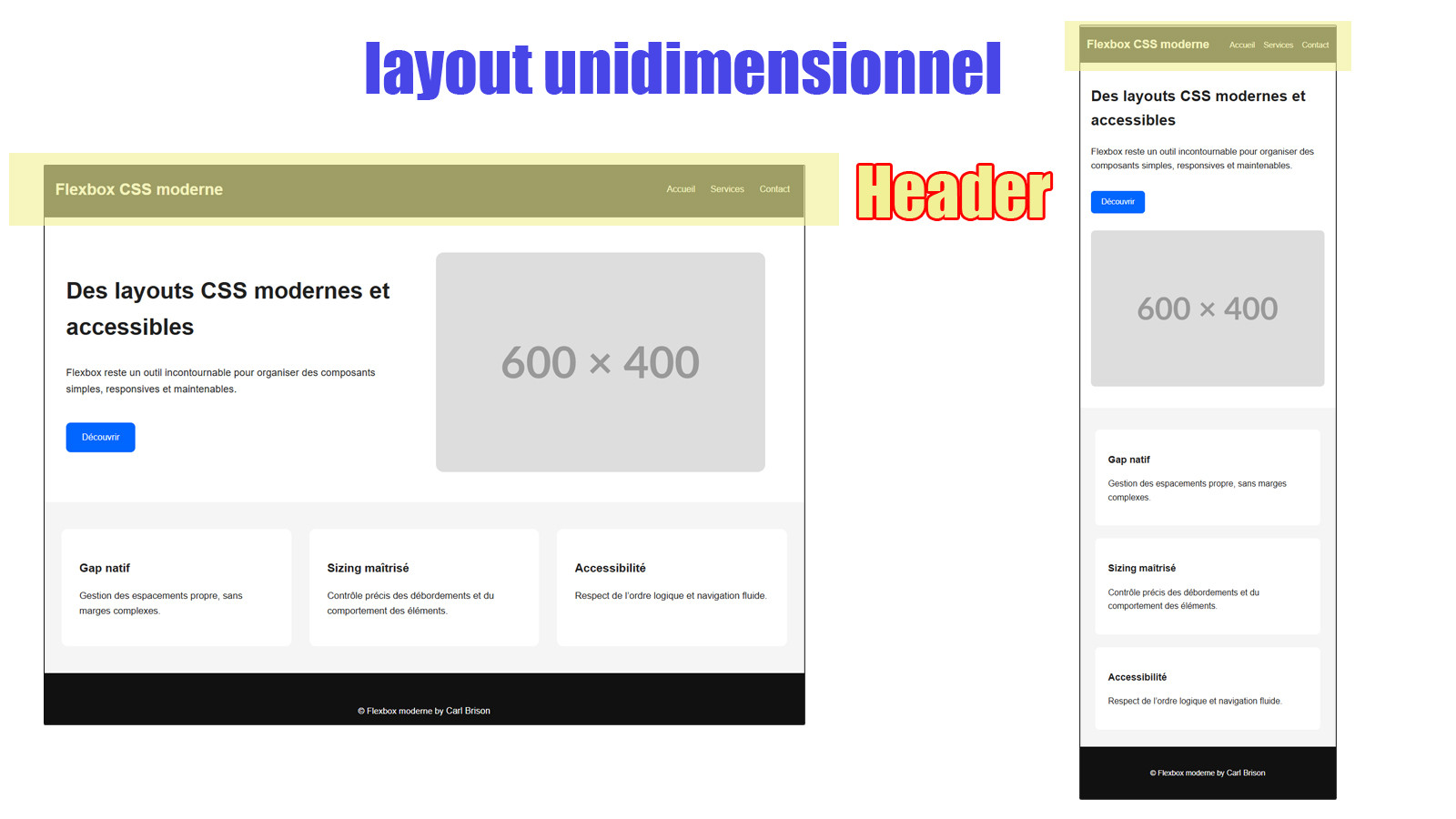 L’objectif n’est pas seulement de “faire fonctionner” le layout, mais de comprendre les choix techniques derrière chaque règle CSS :
