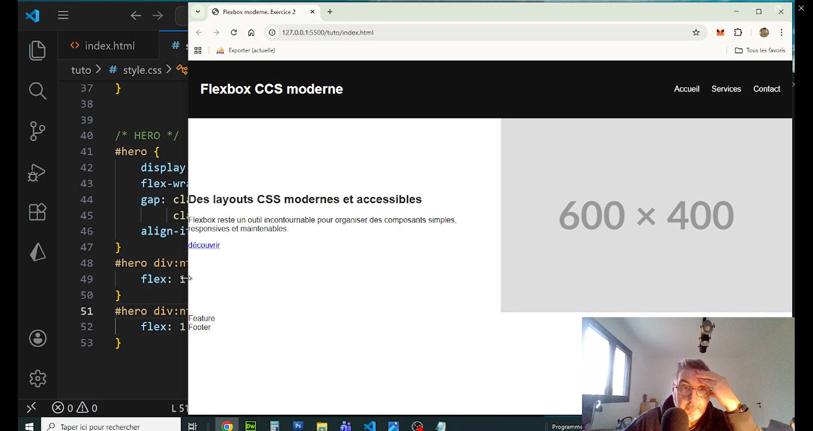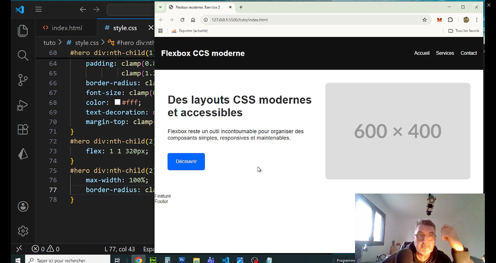 Dans cet exercice, vous allez concevoir une page web responsive complète en exploitant les fonctionnalités modernes de Flexbox, telles qu’elles sont utilisées en production en 2026.