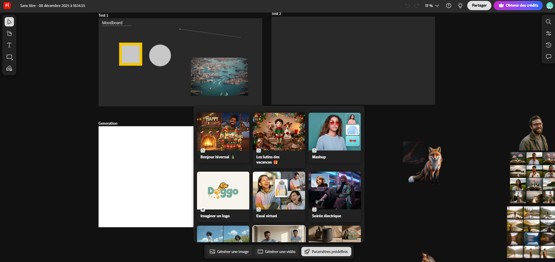- Générer des images avec Firefly directement depuis votre board,