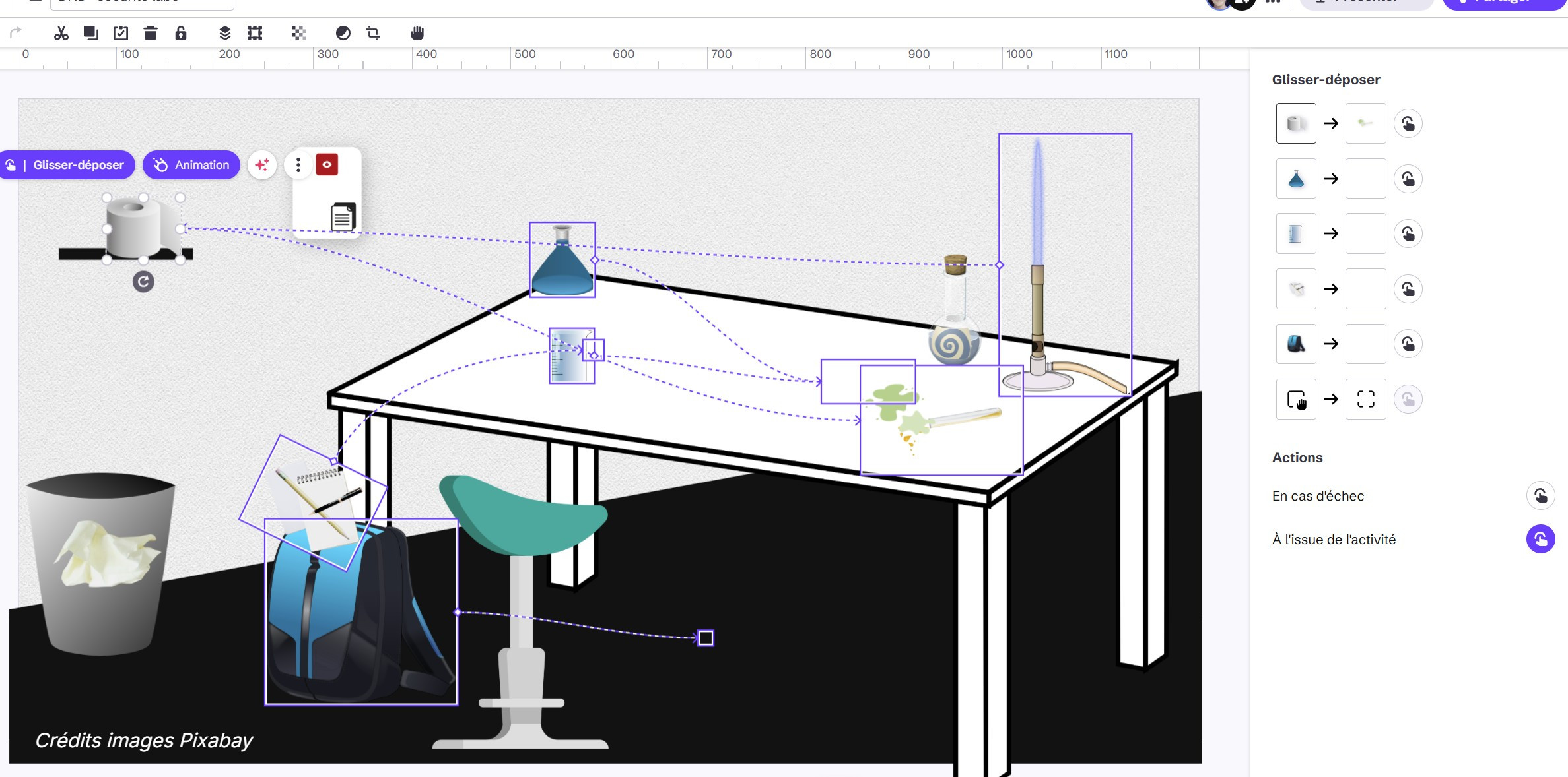 Grâce à cette nouvelle fonctionnalité native, il est désormais possible de créer des activités de glisser-déposer (Drag and Drop en anglais - DND) allant des plus simples aux plus complexes pour vos supports de communication ou modules e-learning.