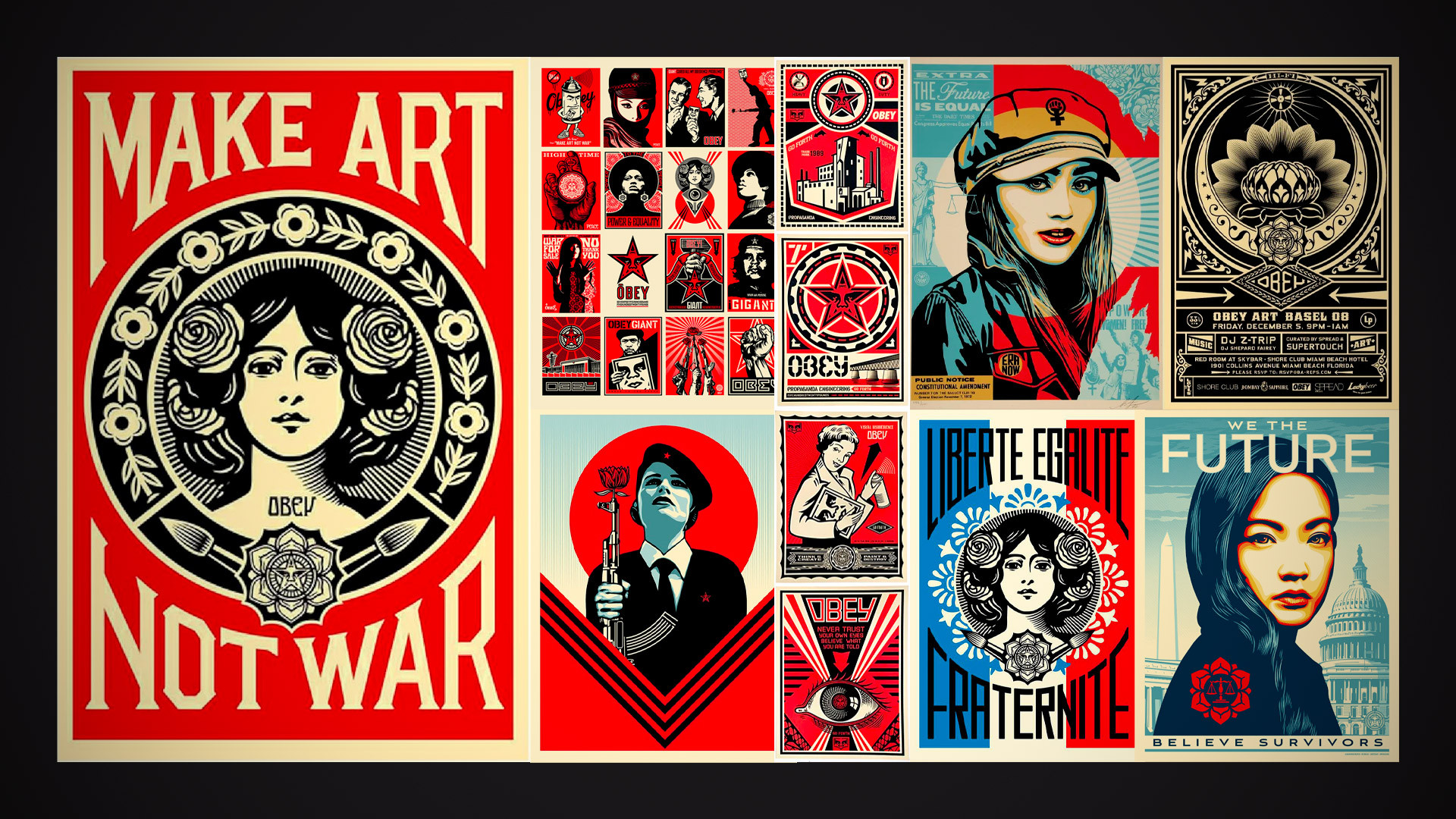 - voir comment des artistes réutilisent ces principes dans leurs affiches (OBEY, HOPE, etc.)