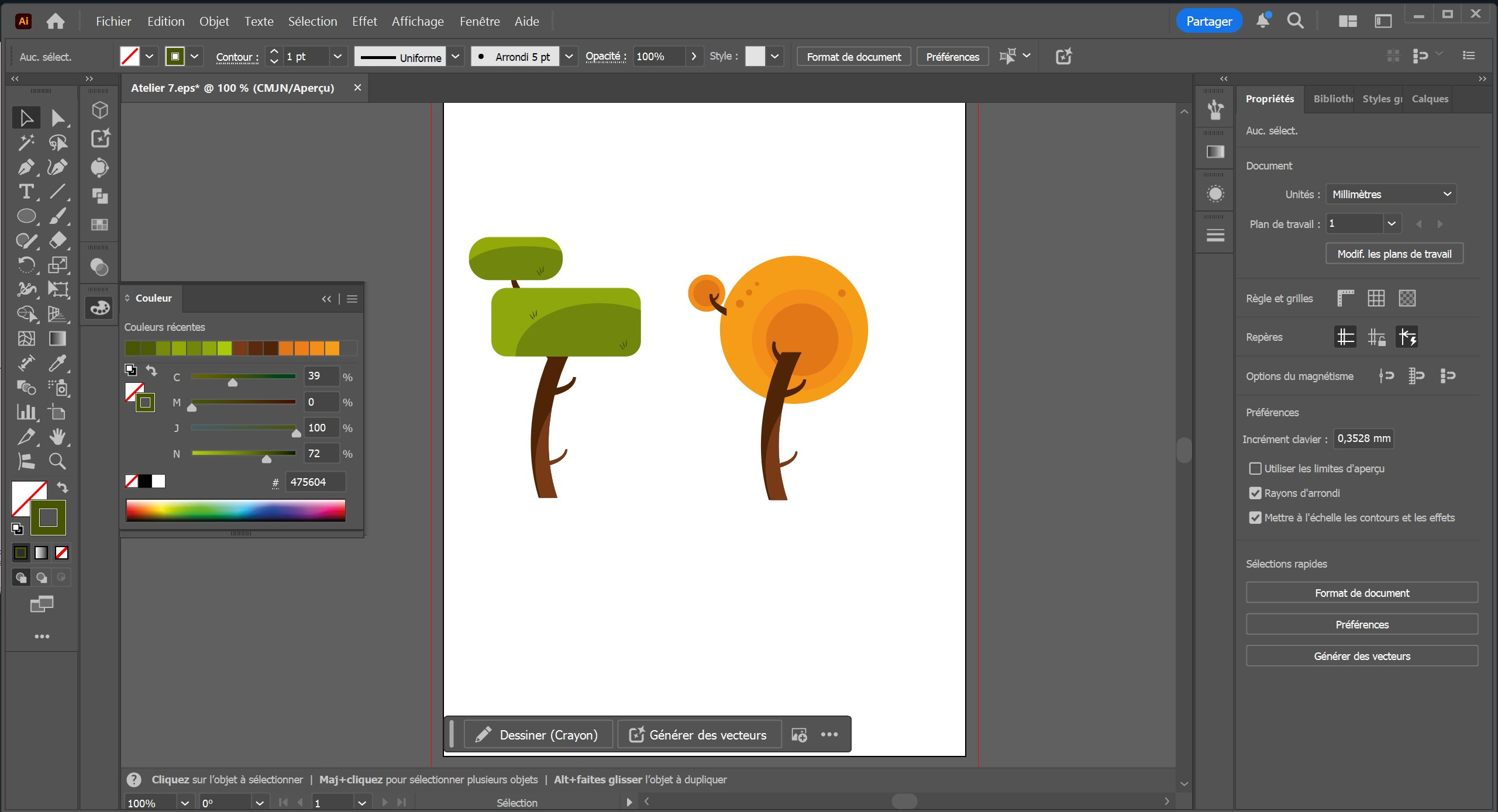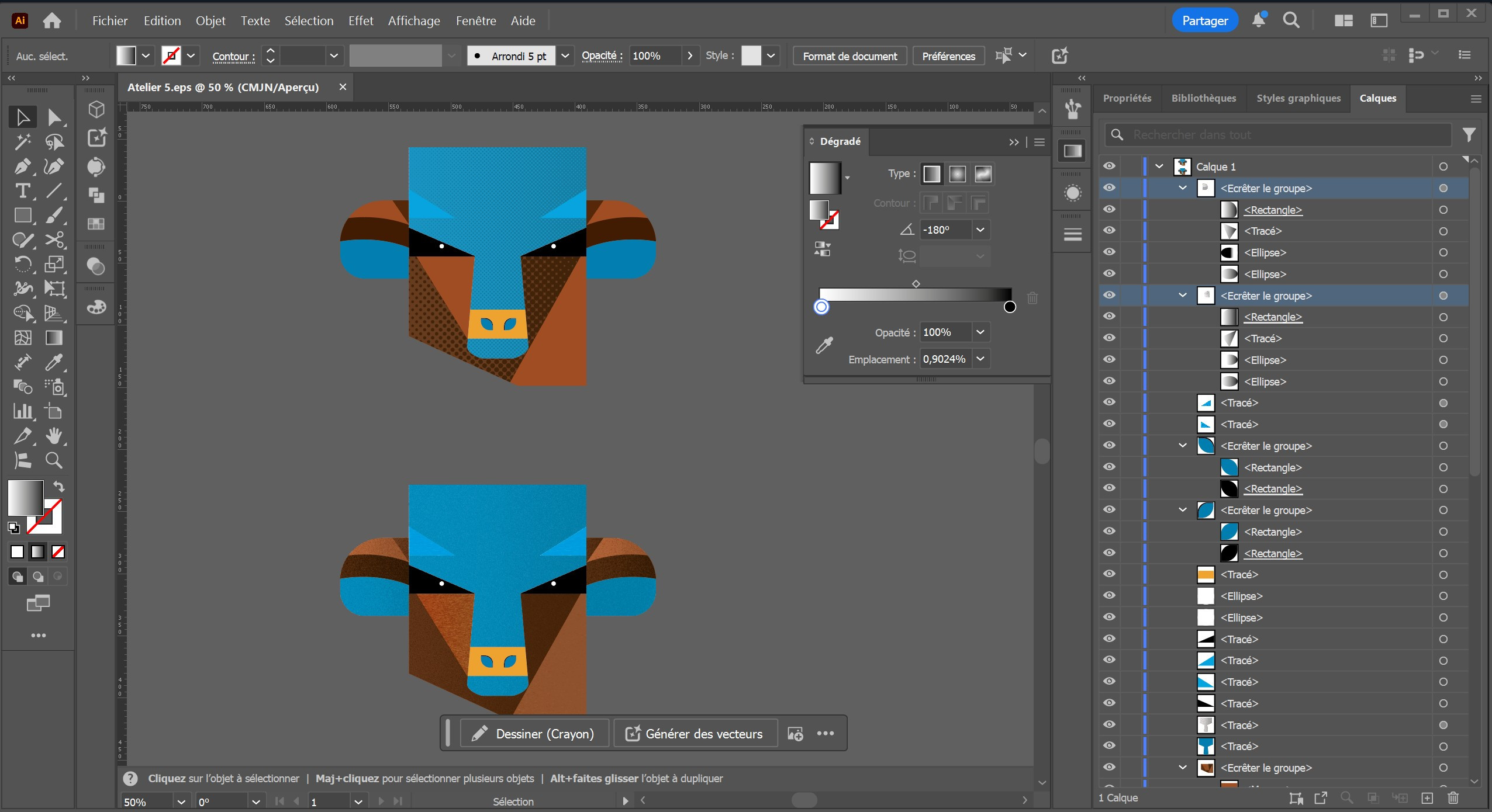 - Utiliser le panneau Pathfinder, les symboles et les dégradés pour donner plus de force à vos créations,