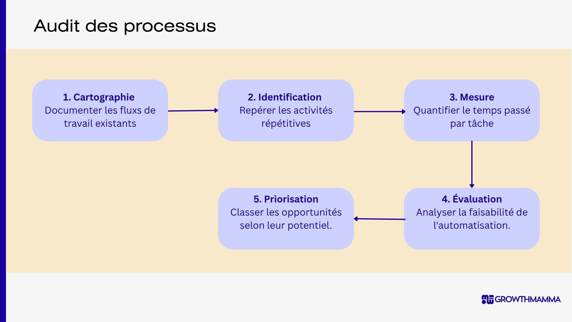 - Identifier les processus et tâches qui peuvent être augmentés ou automatisés grâce à l’IA.