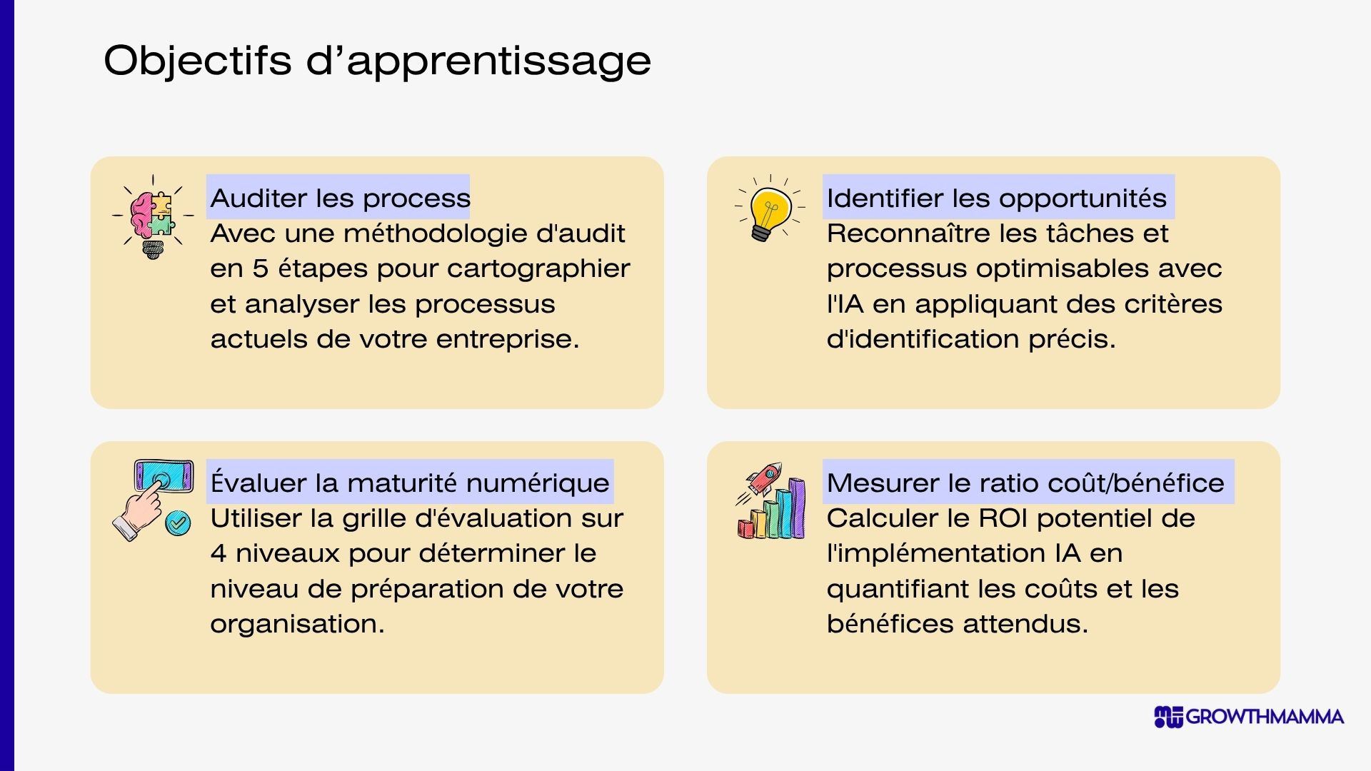 - → Vous éviterez les erreurs classiques des projets IA (investissements inutiles, manque d’adoption, perte de sens).