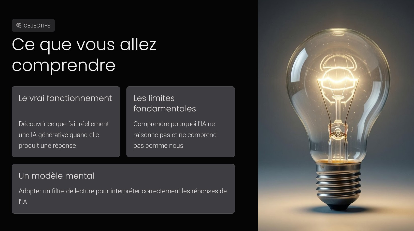 Il permet de comprendre en profondeur comment fonctionnent réellement les modèles, pourquoi ils se trompent, et dans quelles conditions leurs réponses sont exploitables.