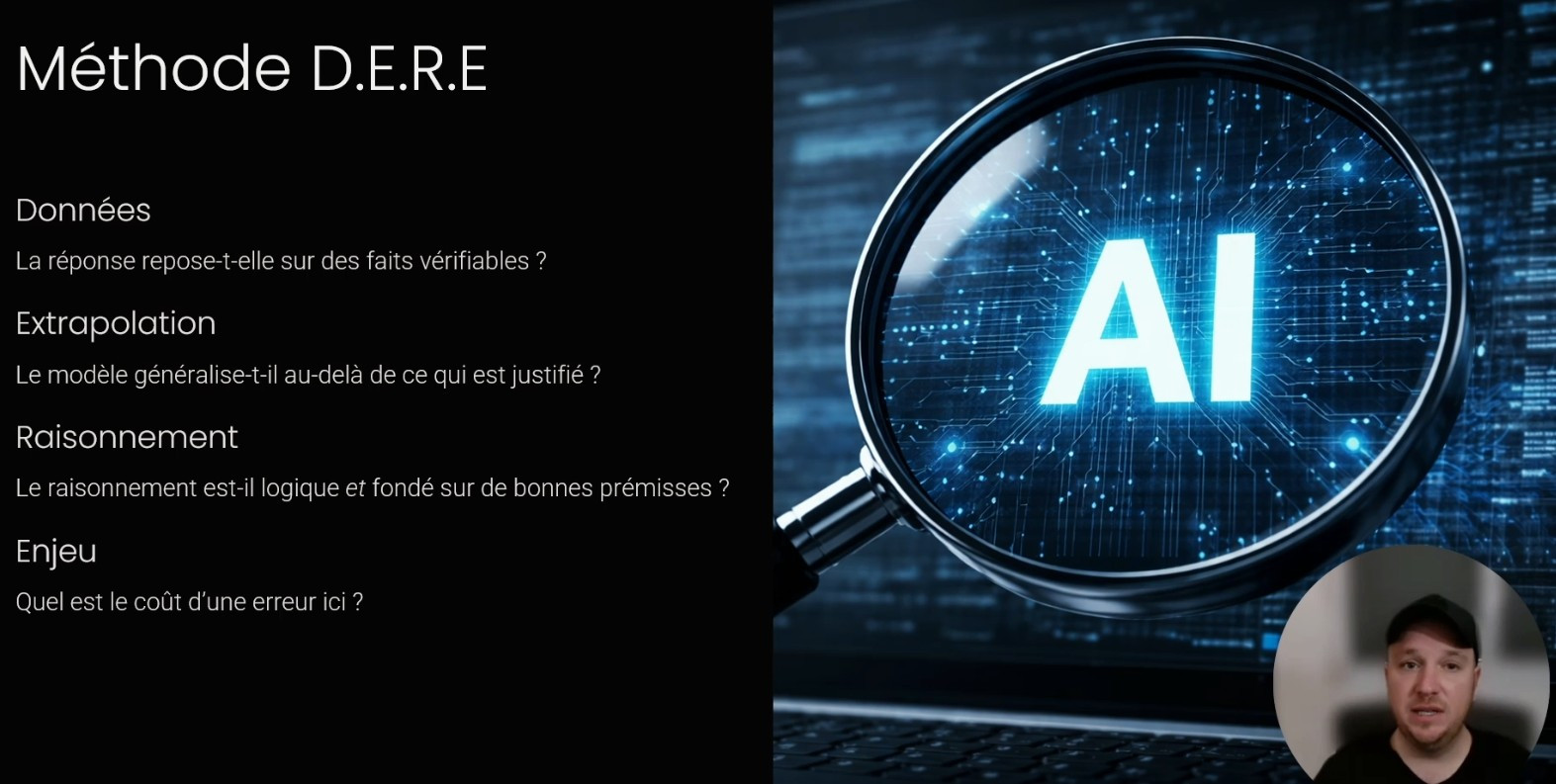 Vous apprenez à évaluer la fiabilité d’une réponse, à expliciter ses hypothèses et à identifier les zones de risque.