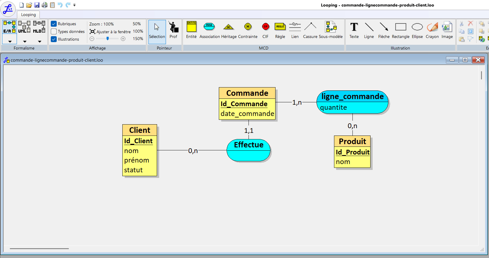 - Le cours intègre également une partie pratique dédiée à la modélisation avec l’outil Looping, afin de vous permettre de créer vos propres modèles (MCD, MLD, MPD et UML).