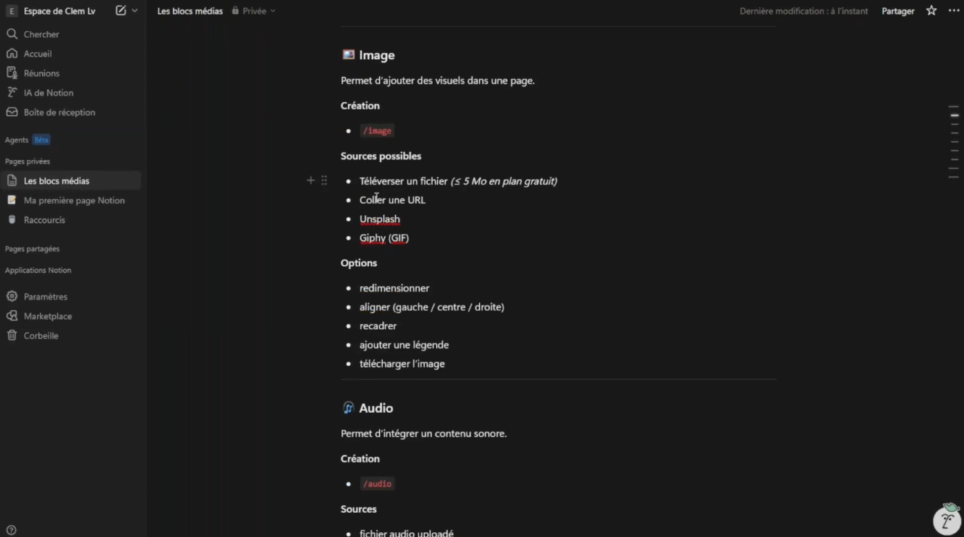 Le cours alterne théorie et pratique pour vous permettre de tester chaque fonctionnalité directement dans Notion.