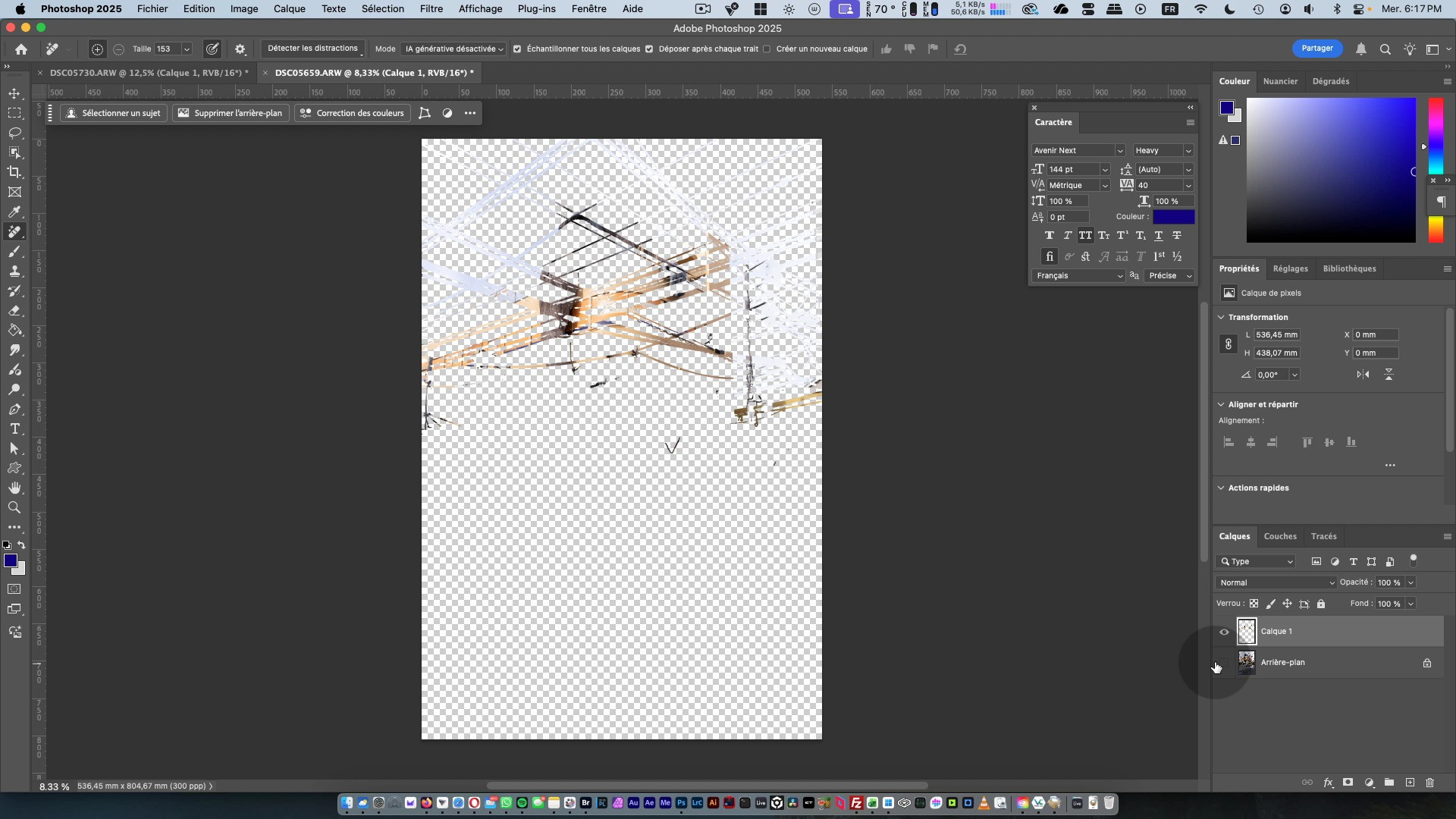 - Utiliser le Remplissage génératif pour créer ou supprimer des éléments.