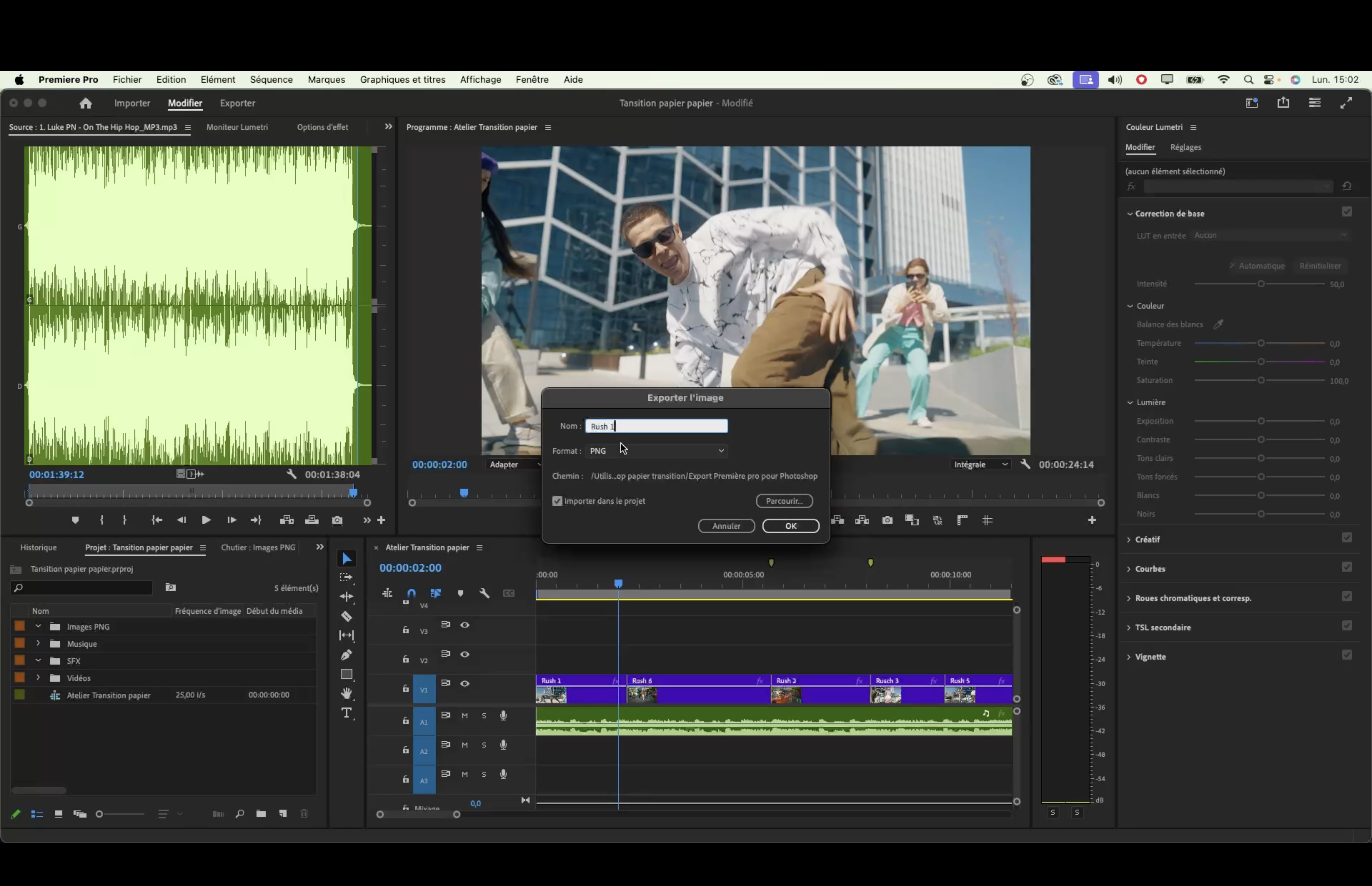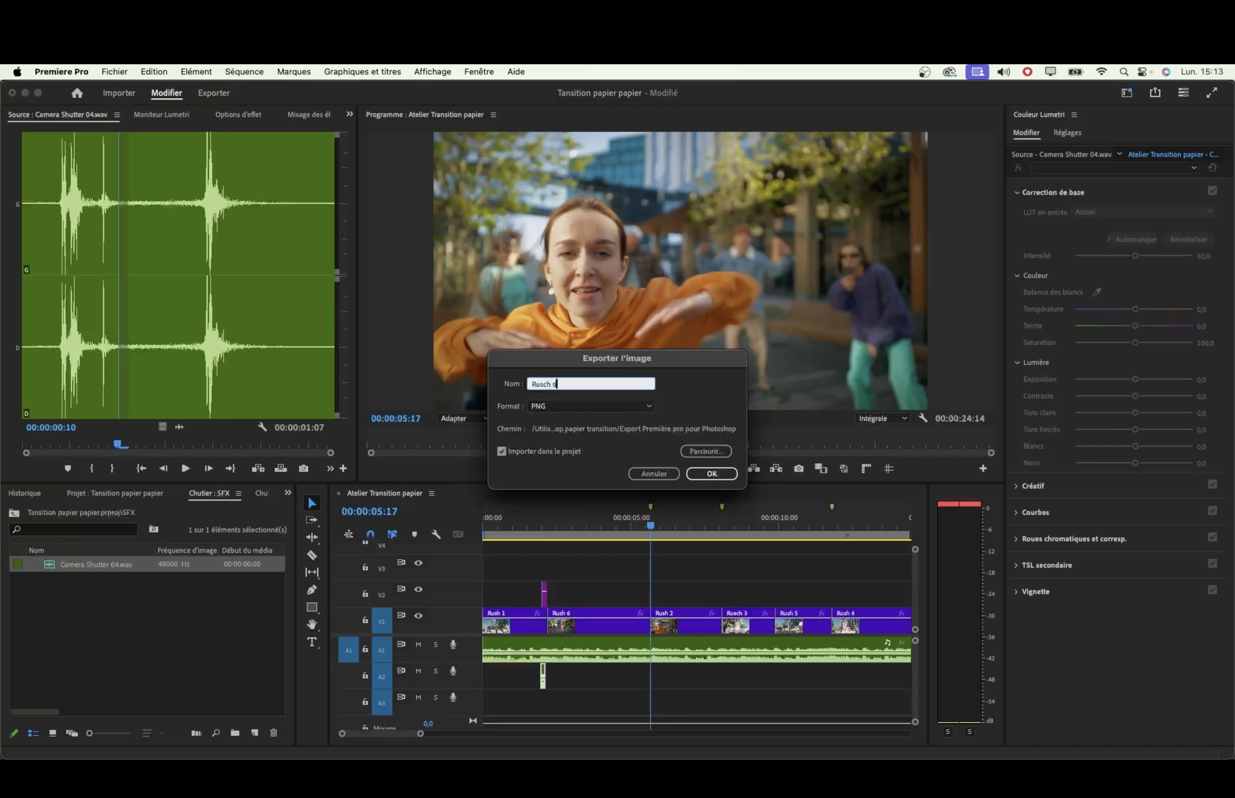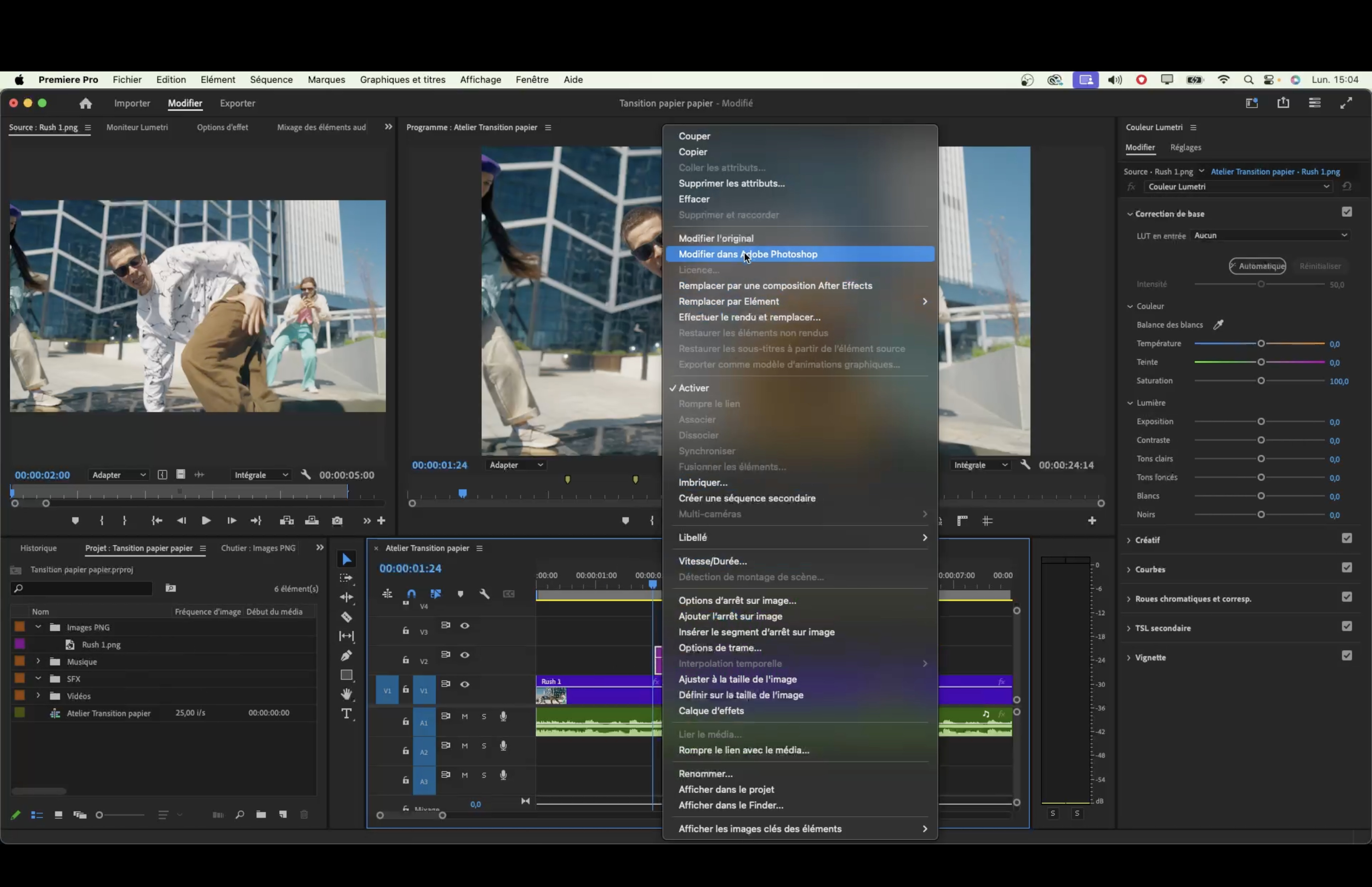 - Réimportation des images modifiées dans Photoshop vers Premiere Pro.