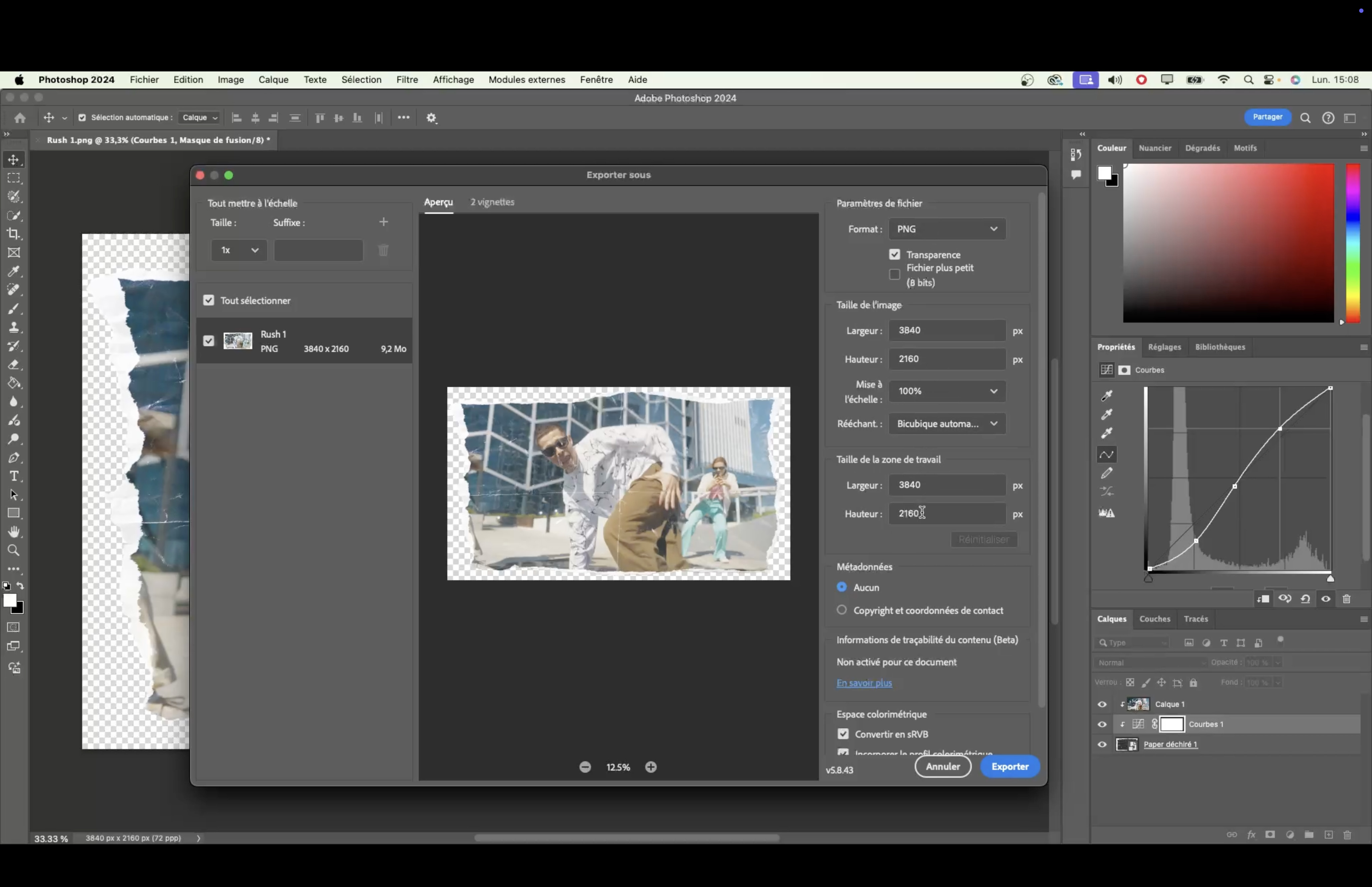 - Utilisation de l'onglet réglage (courbe, niveaux, etc......).