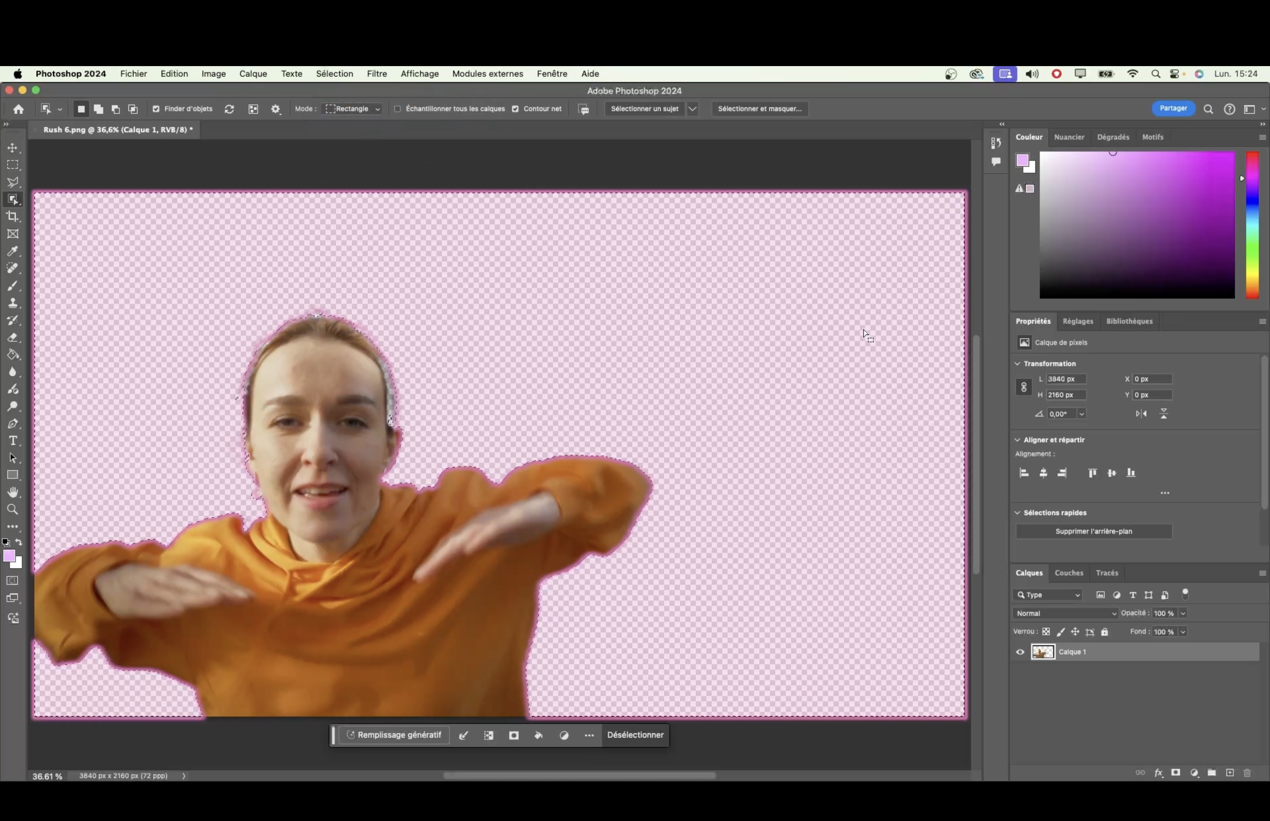 - l'outil sélection d'objet, outils de sélection rapide, supprimer l'arrière-plan.