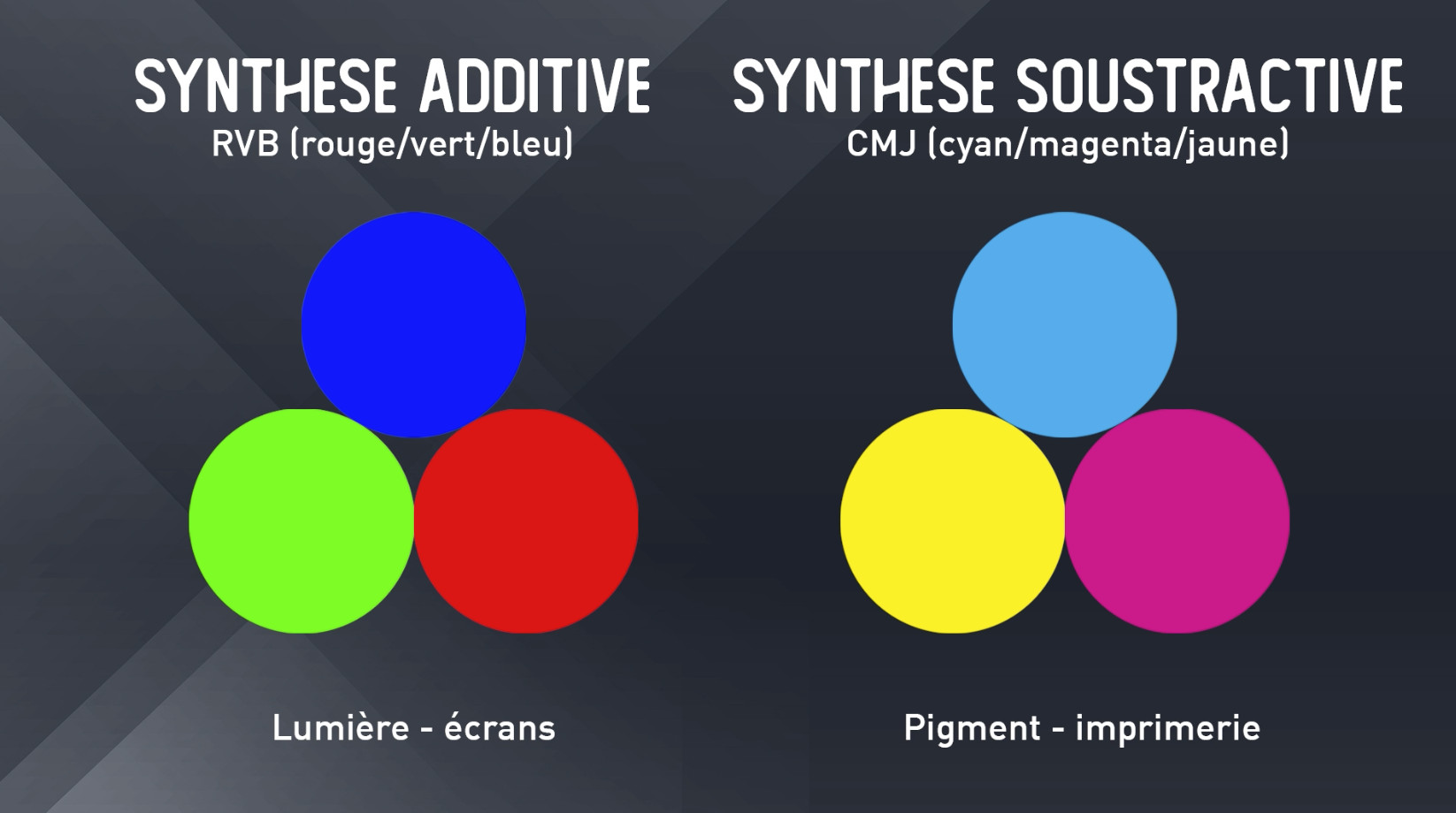 - Comprendre la structure des couleurs primaires, secondaires et tertiaires, en numérique (RVB) comme en impression (CMJN)