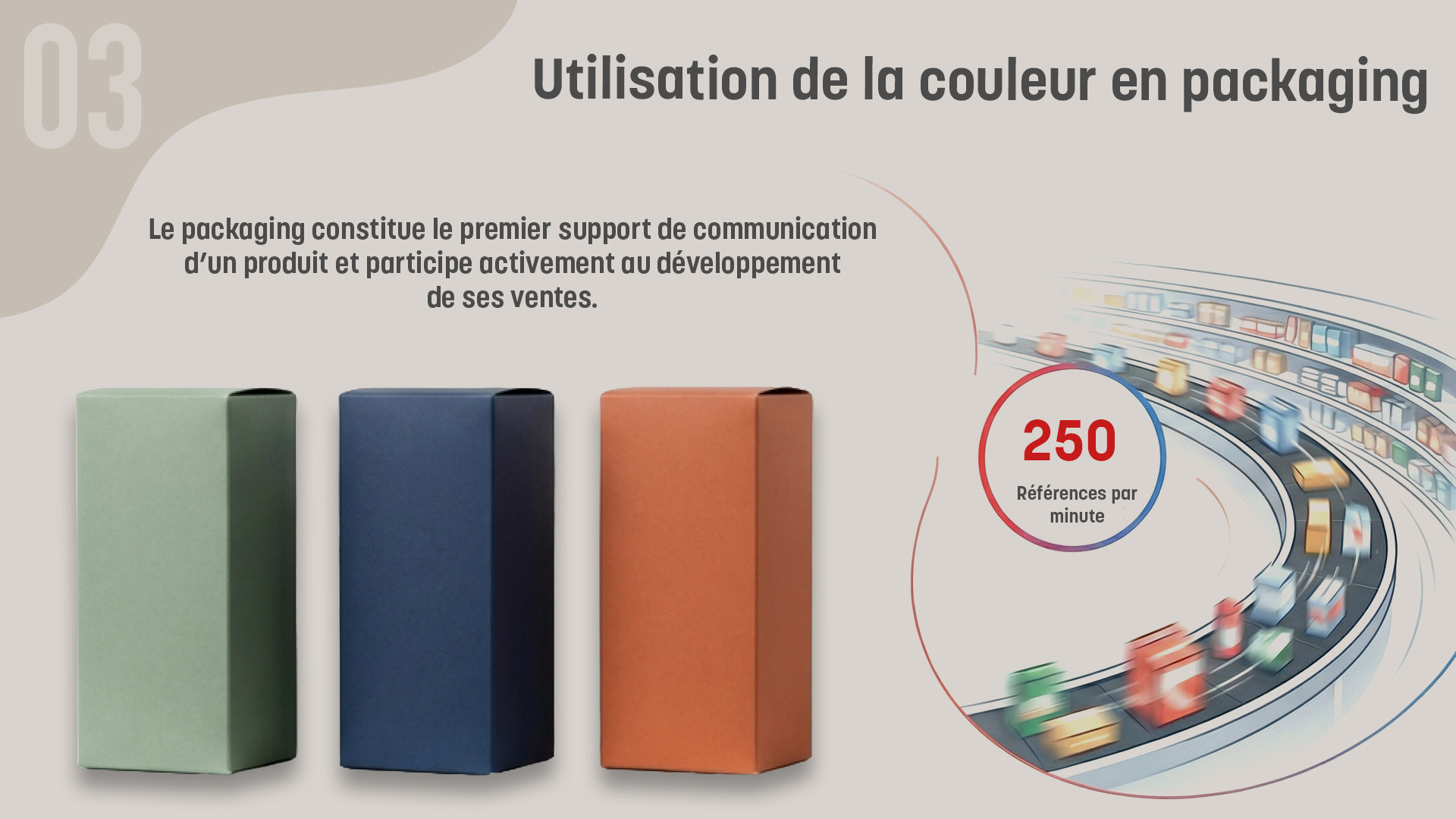 - En packaging, elle renforce l’identité visuelle d’une marque, d’un produit.