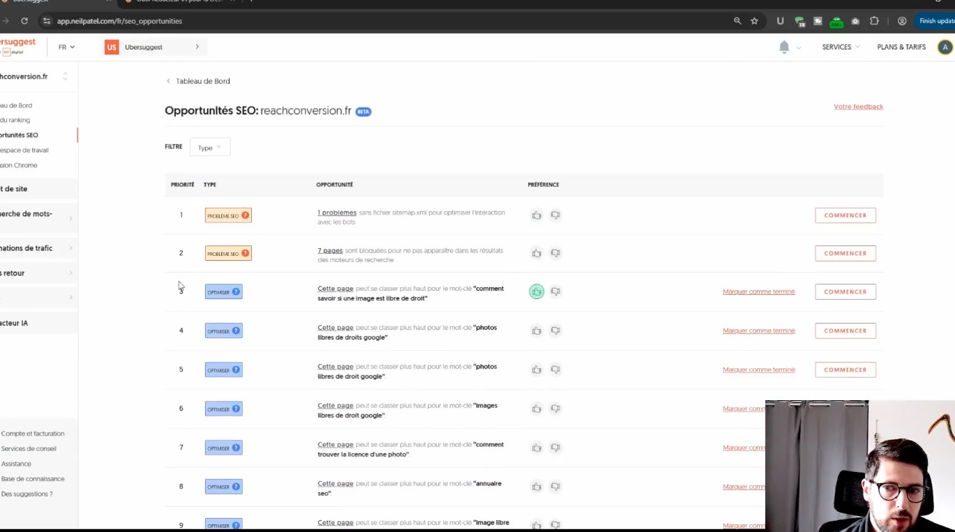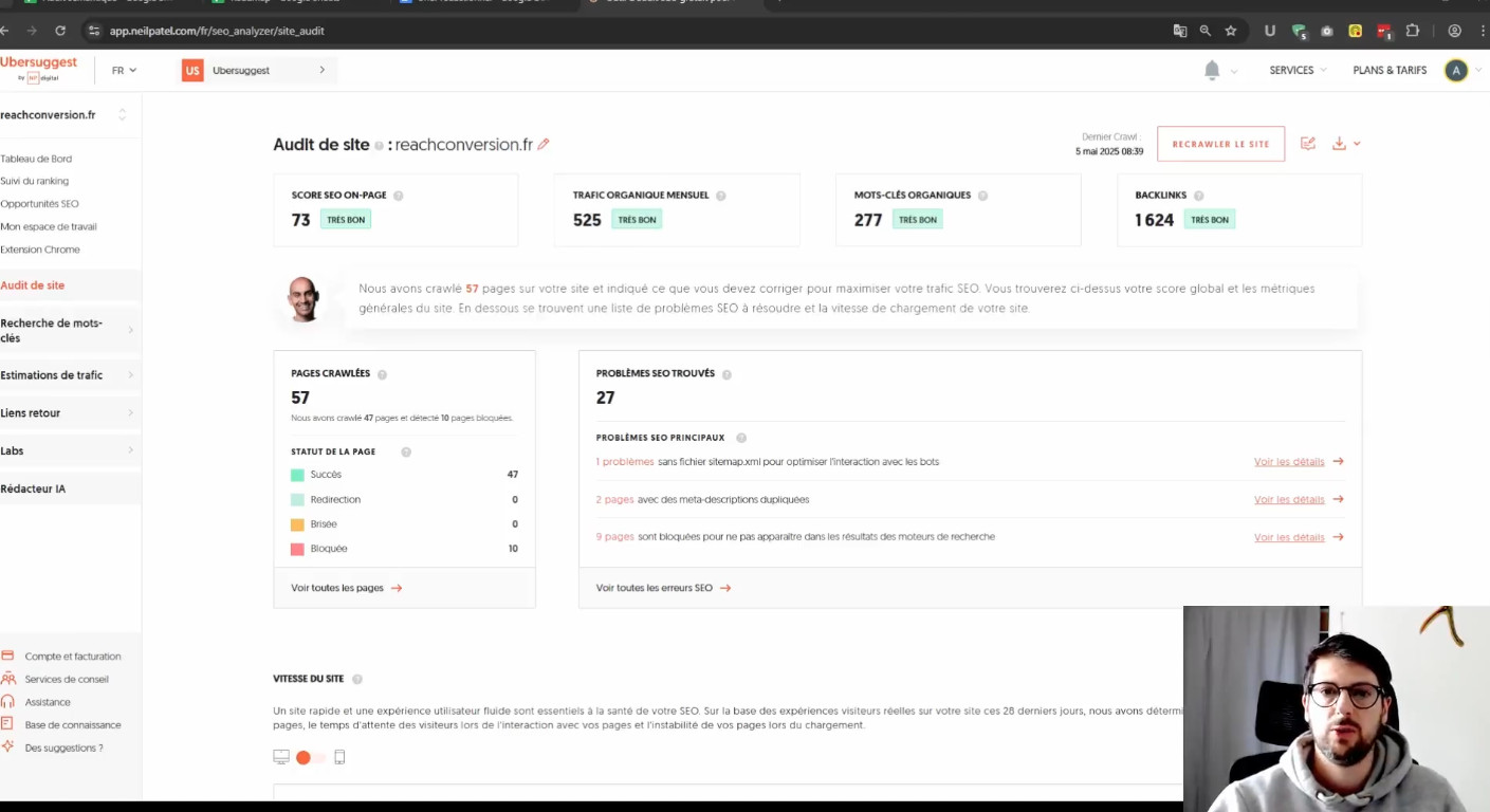 - L'interface de l'outil Ubersuggest pour l'audit sémantique.
