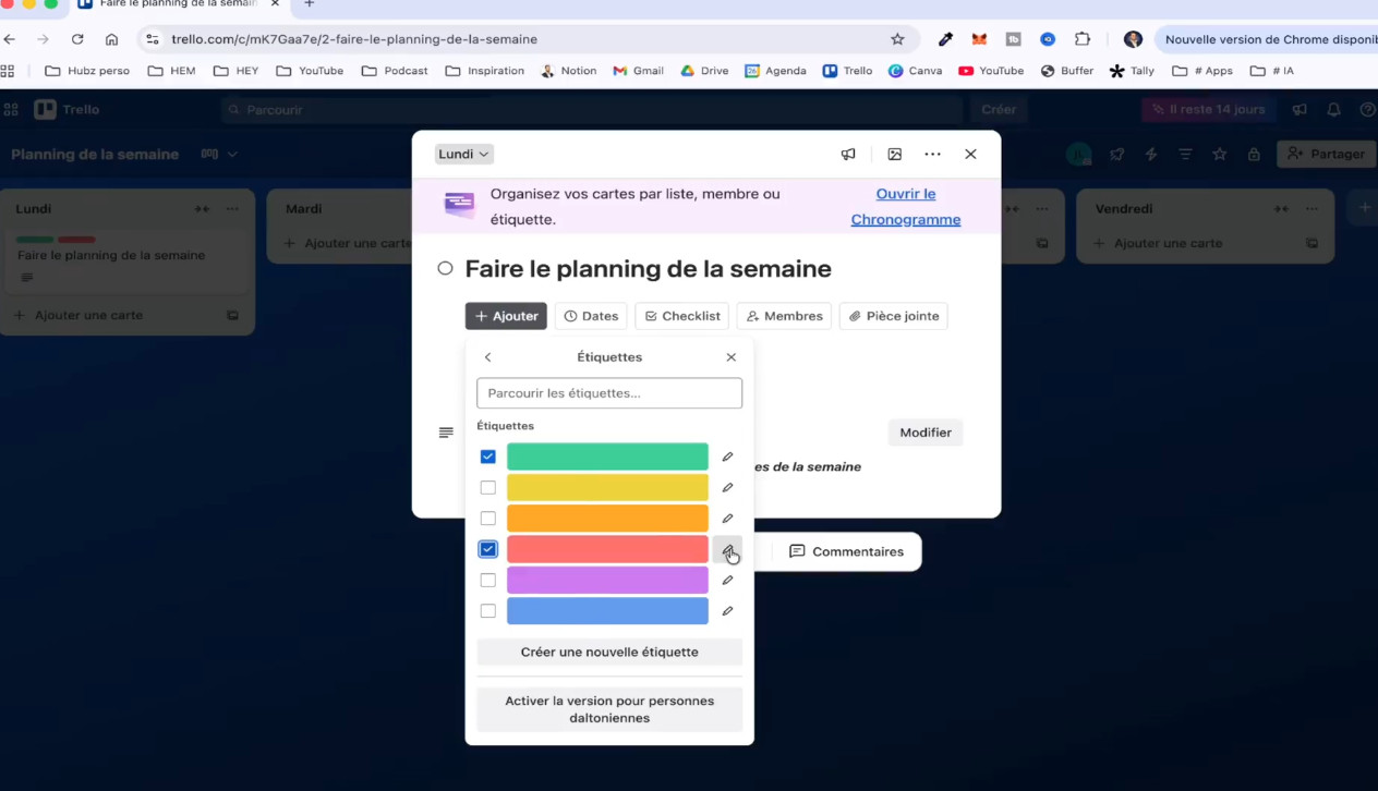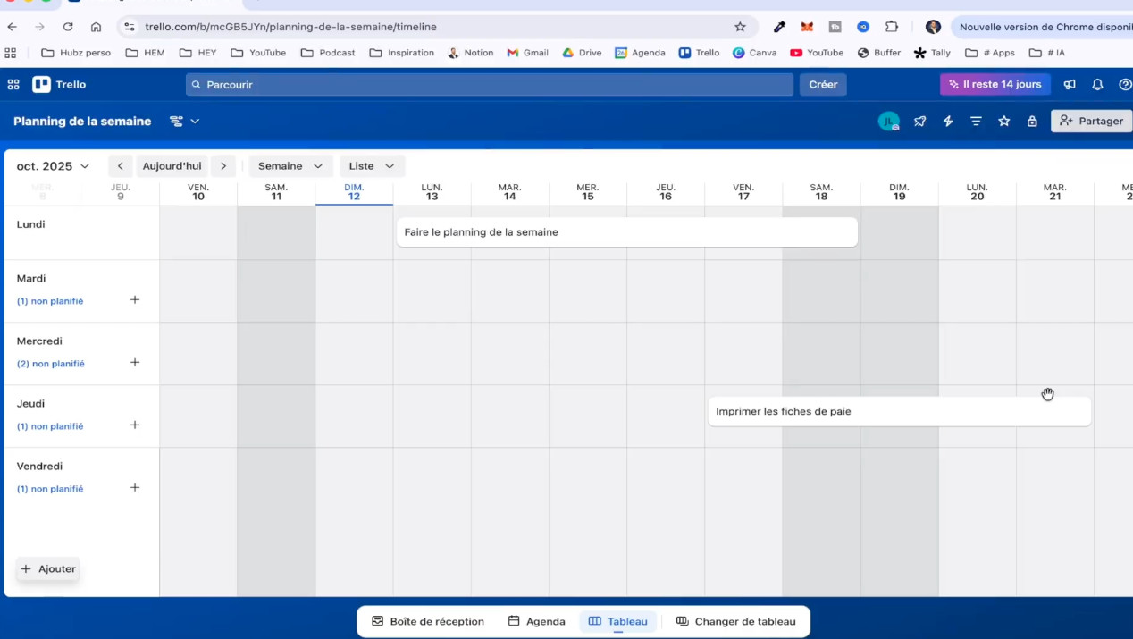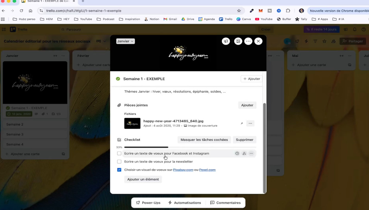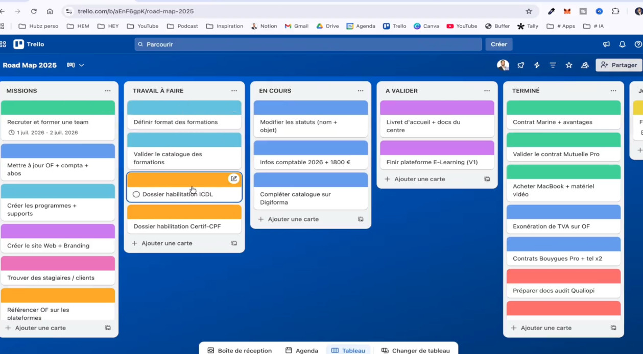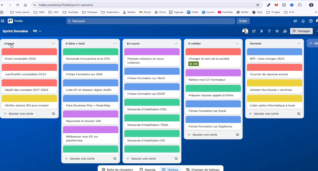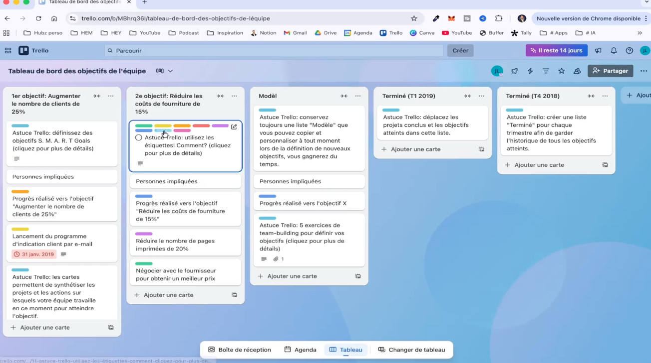 Pour vous entraîner, vous pouvez reproduire le tableau Trello réalisé pendant le cours.