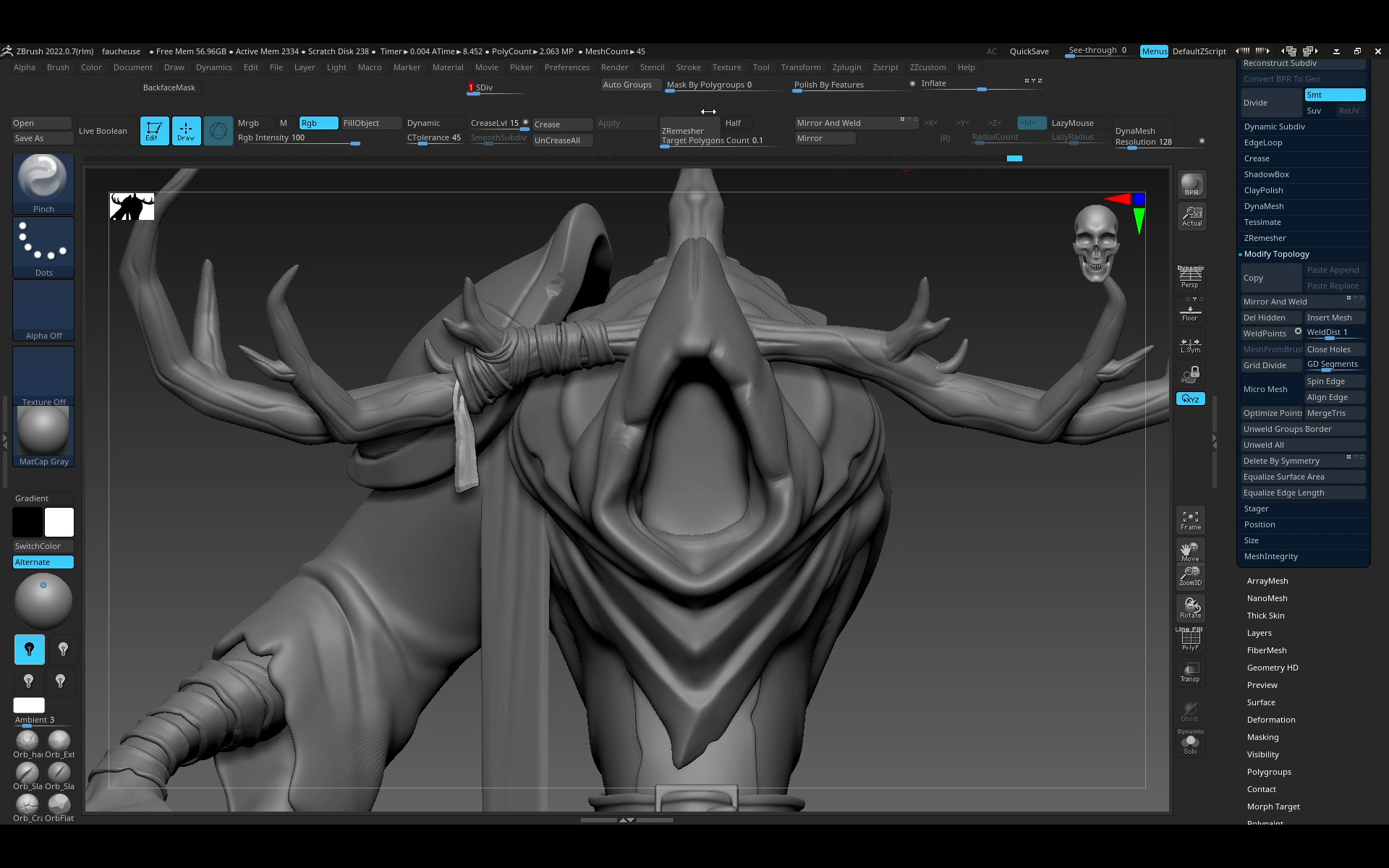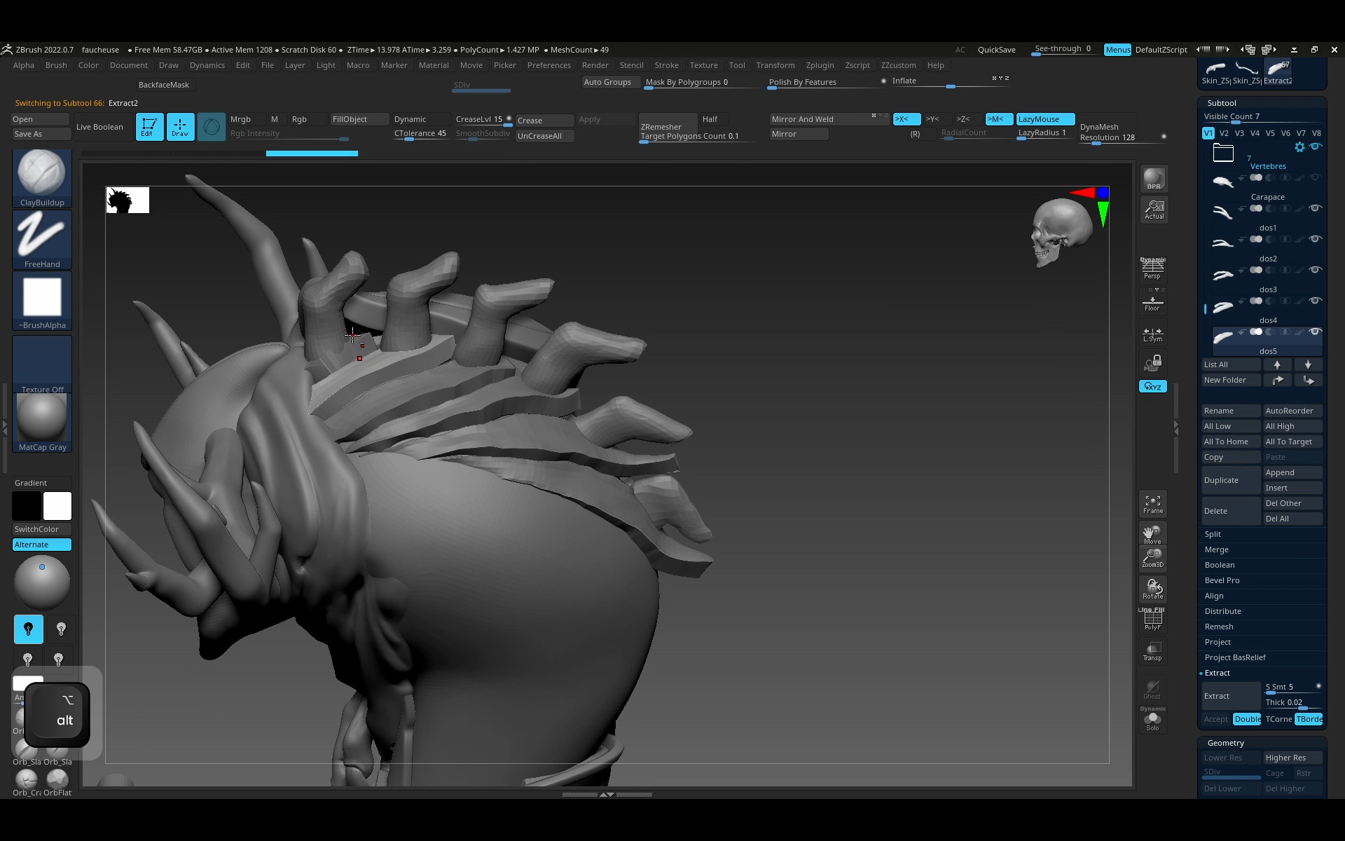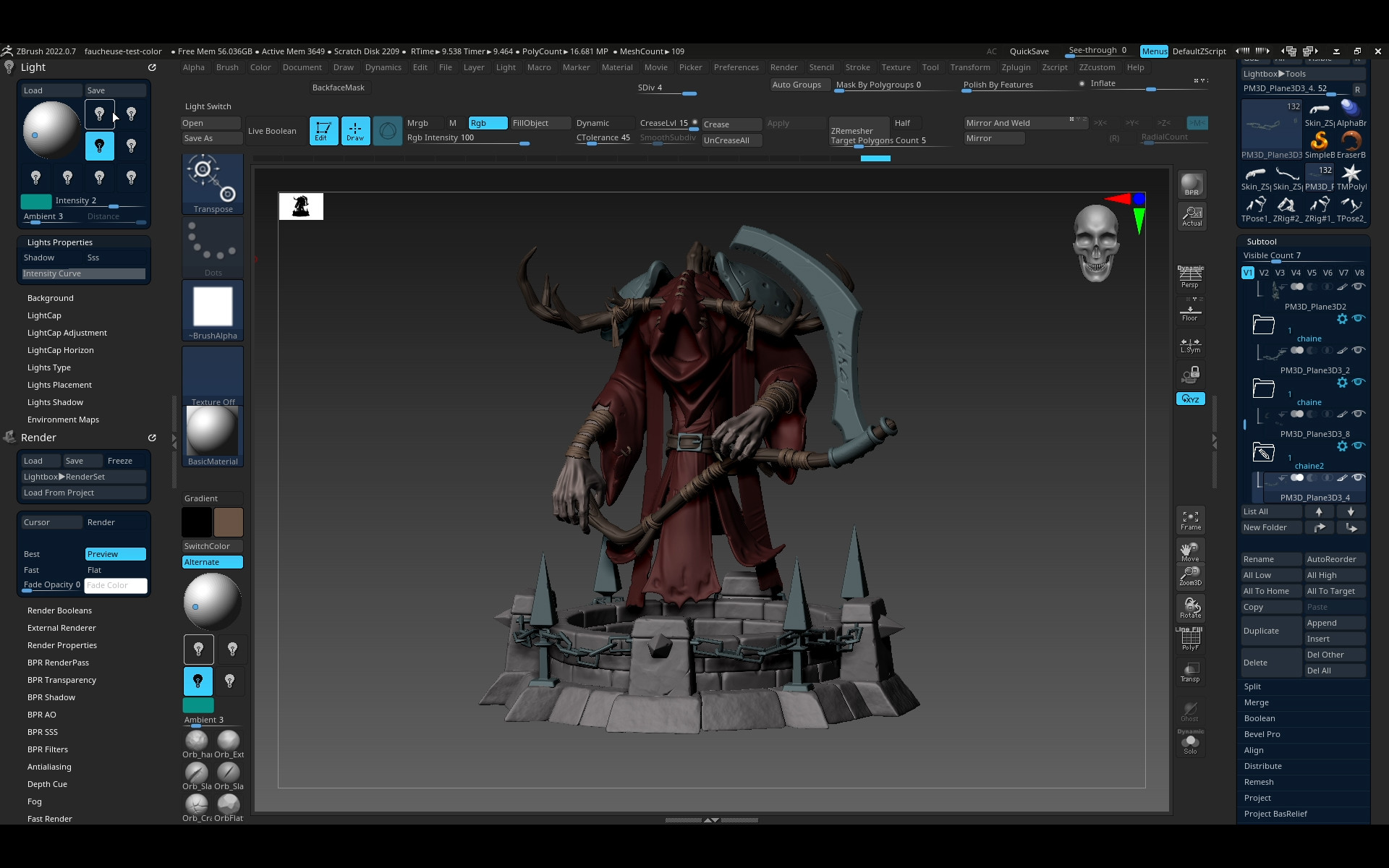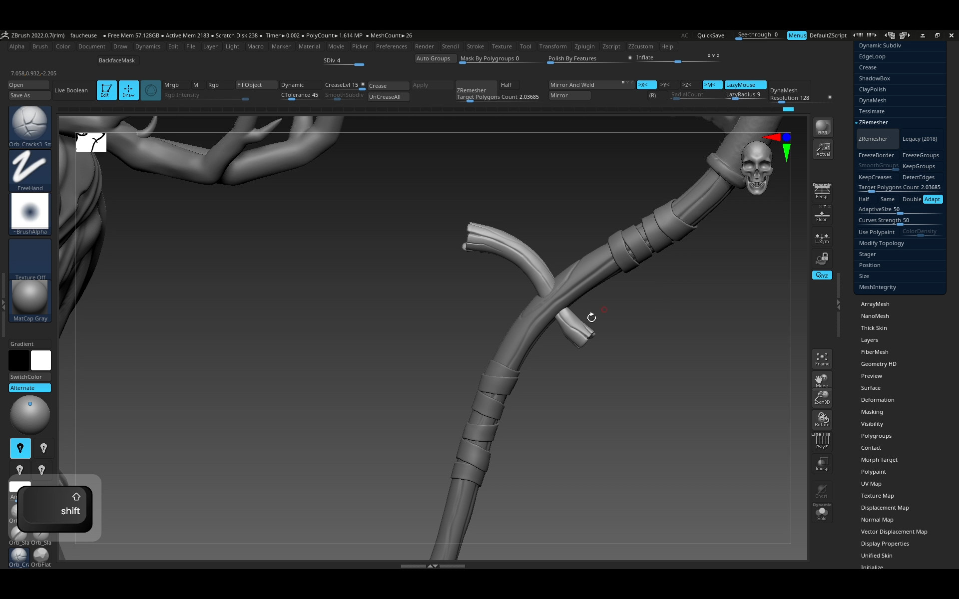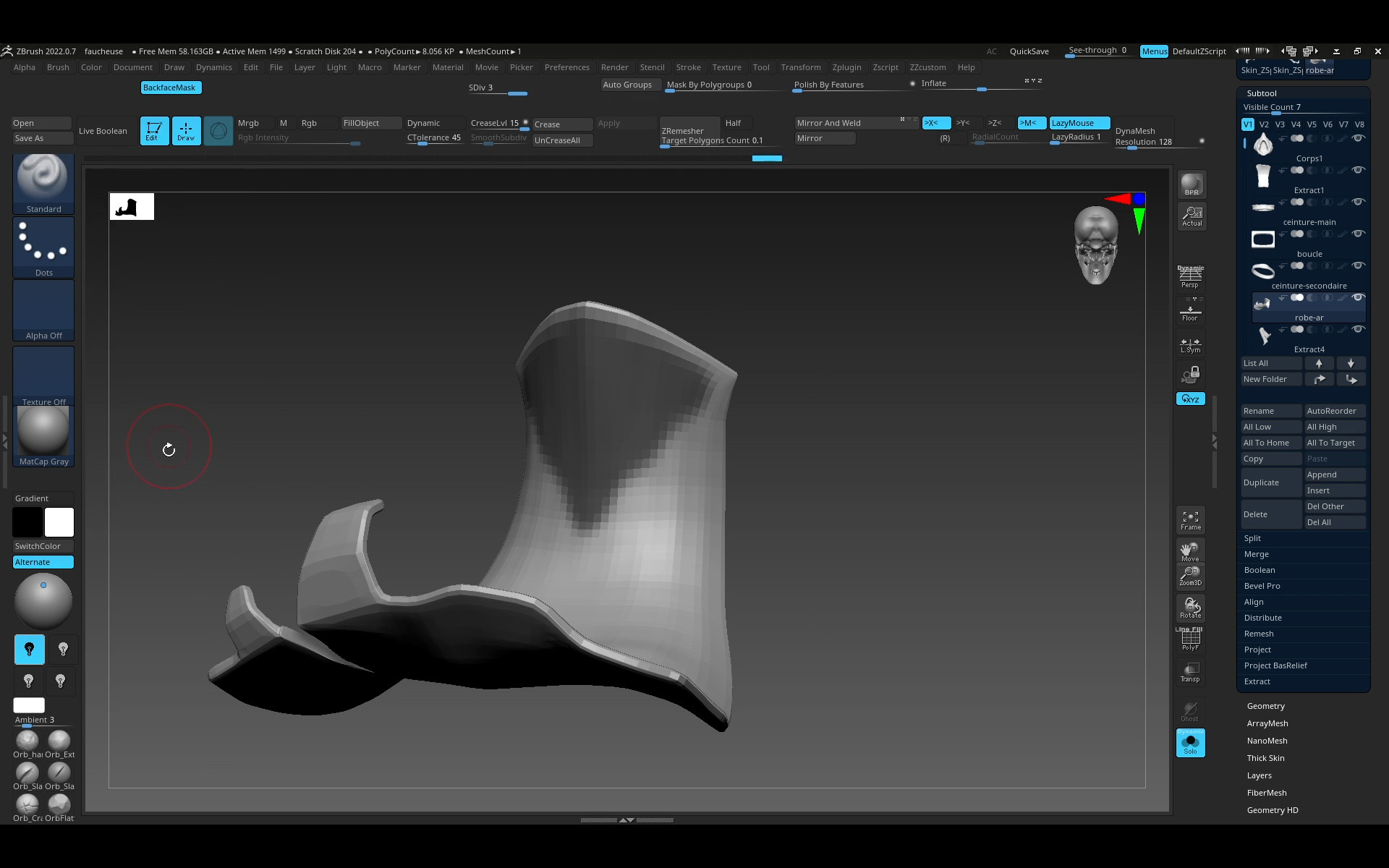 - Nous utiliserons différents outils : ZRemesher, Zmodeler, Dynamesh et les ZSpheres afin de nous faciliter la création de certains meshes.